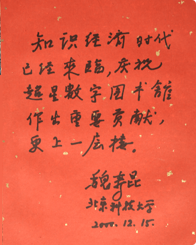 祝超星图书馆在信息时代为发展我国科技事业做出更大贡献!